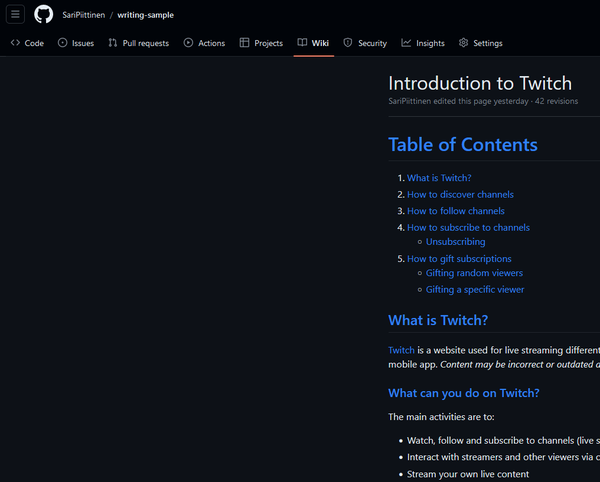 The document is a guide to new streamers on Twitch. It introduces different aspects to consider when starting up a new stream and channel.